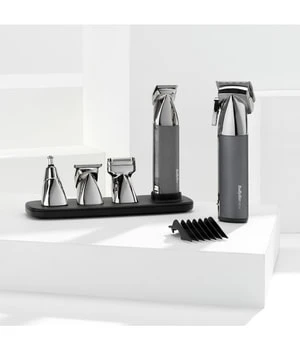 High Performance Multi-Trimmer mit 4 Aufsätzen für eine sanfte, effiziente Pflege von Gesicht- , Kopf- und Körperhaar. Magnetische Scherköpfe für einfaches Wechseln der Aufsätze. Die magentischen Aufsätze haften an der USB-Ladestation und sorgen für ein einfaches und elegantes Design.