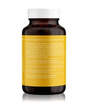– Innovative Formel & hochwertige, natürliche Wirkstoffe: 14 fein selektierte Inhaltsstoffe mit Ashwagandha, Rosenwurz, sibirischem Ginseng, & Vitamin-B-Komplex, Zitronenmelisse, alpha-Linolensäure, L-Theanin, Vitamin B1, B3, B5. Vitamin B12 und B6 unterstützen eine normale Funktion des Nervensystems und der Psyche*