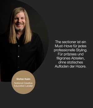 Anwendung: Teile kleine Haarpartien mit dem spitz zulaufenden Stiel des Kamms ab. Halte eine Strähne vom Kopf weg und setze the sectioner einige Zentimeter vom Haaransatz entfernt an. Kämme die Strähne sanft Richtung Haaransatz.