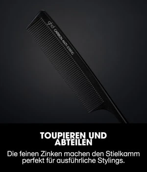 The sectioner tail comb ist ein Stielkamm mit feinen Zähnen zum Toupieren und Abteilen von allen Haarlängen- und Haartypen. Der Kamm ist aus hochwertigem Carbon gefertigt und überzeugt mit anti-statischen und hitzebeständigen Eigenschaften. Mit dem spitz zulaufenden Stiel lassen sich Haarpartien präzise abteilen, weshalb the sectioner das perfekte Hilfsmittel für Hochsteckfrisuren ist.