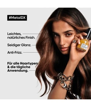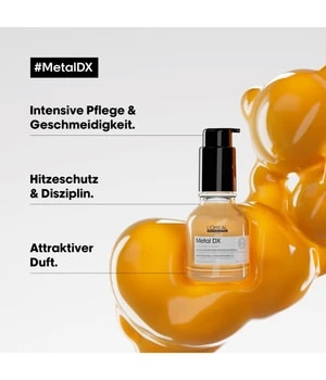 Das Metal DX Öl von L’Oréal Professionnel Paris wurde für alle Haartypen entwickelt. Es ist die perfekte Ergänzung der Metal DX Routine. Angereichert mit konzentrierten Wirkstoffen wird die reichhaltige Textur sofort von der Haarfaser aufgenommen, ohne das Haar zu fetten. Das Öl macht das Haar glänzender (nach Anwendung der Metal DX Routine). Das Haar wird gepflegt und gestärkt. Schützt vor Hitze bis zu 230°C.*