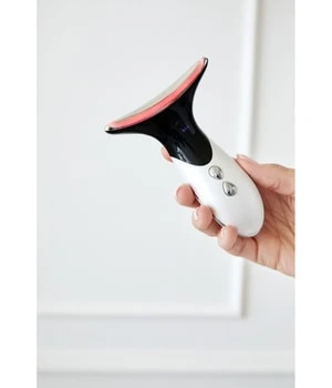 LED-Ultraschalllicht und EMS-Technologie (elektro Muskelstimulation). Das Gerät verwendet ein breites Lichtspektrum, bei dem jedes Licht verschiedene Hautpflegeeffekte fördert, während die Hochfrequenzvibrationen die Aufnahme aktiver Hautpflegeprodukte maximieren. Das EMS Light Device kann für Gesicht, Hals, Dekolleté, Schultern und Rücken verwendet werden. Geeignet für alle Hauttypen.