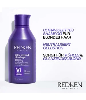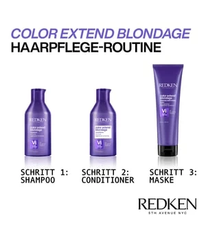Fashion, Inspiration, Innovation – das ist Redken 5th Avenue NYC. Die Redken Haarpflege-Produkte sind auf unterschiedliche Bedürfnisse abgestimmt und garantiert somit eine simple und gleichzeitig optimale Haarpflege-Routine – beim Friseur und im eigenen Badezimmer. Entdecken Sie die perfekte Pflege für Ihr Haar und erleben Sie die professionelle Redken-Expertise jetzt ganz einfach zu Hause. Veredeln Sie Ihr blondes Haar mit Color Extend Blondage Shampoo. Das Aufbaushampoo ist die perfekte milde Reinigung für blondes und blondiertes Haar und wirkt gegen unerwünschte Gelb- & Orangereflexe. Das Anti-Gelbstich-Shampoo bietet Farbschutz und verleiht dem Haar brillanten Glanz. Zusätzlich wird das Haar von Innen durch den Triple Acid Protein-Komplex gekräftigt und gestärkt. Für optimale Ergebnisse in Kombination mit dem Color Extend Blondage Conditioner sowie der intensiv pflegenden Haarmaske verwenden.