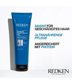 Fashion, Inspiration, Innovation – das ist Redken 5th Avenue NYC. Die Redken Haarpflege-Produkte sind auf unterschiedliche Bedürfnisse abgestimmt und garantiert somit eine simple und gleichzeitig optimale Haarpflege-Routine – beim Friseur und im eigenen Badezimmer. Entdecken Sie die perfekte Pflege für Ihr Haar und erleben Sie die professionelle Redken-Expertise jetzt ganz einfach zu Hause. Behandeln Sie alle Arten von Haarschäden mit dem Redken Extreme Haarpflege-System. Die Redken Extreme Strength Builder Maske ist eine stärkende Intensiv-Maske mit dem höchsten Anteil an reparierenden Ceramiden. Besonders brüchiges und erschöpftes Haar kann von dieser Maske profitieren. Die Intensivpflege fokussiert sich insbesondere auf die rissigen Stellen im Haar und pflegt diese intensiv. Für mehr Widerstandskraft und eine schützende Glanzschicht.