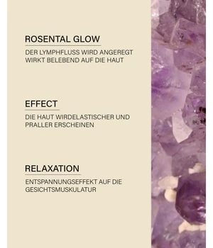 Detox für Haut & Seele durch den Heilsteineffekt von 100% reinem Amethyst & effektiver Lymphdrainage. Der Amethyst besitzt eine beruhigende, klärende Wirkung, hilft gegen Unreinheiten und verbessert dein Hautbild dank entzündungshemmender Eigenschaften. Der Anti-Aging Effekt: Prallere, gestraffte Haut mithilfe gezielter Tiefenmassage für eine Aktivierung und Entspannung der Gesichtsmuskulatur & Stimulation der körpereigenen Kollagenproduktion.