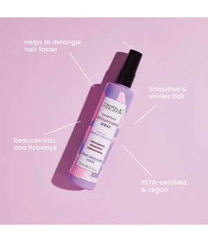 Das neue Everyday Detangling Spray bekämpft, mithilfe von Weizenproteinen Verfilzungen, Haarbrüche und Kräuselungen im Haar. Es ist besonders für feines bis mittleres Haar geeignet. Nach der ersten Anwendung ist das Haar bereits glatt, weich, glänzend und enthält einen leichten blumigen Duft. Das Spray kann sowohl auf nassem, als auch auf trockenem Haar angewendet werden, somit kann das Haar auch unterwegs mit zusätzlicher Feuchtigkeit versorgt werden. Besonders gut geeignet für feines bis mittleres Haar. Sorgt für ein sanftes Entknoten der Haare. Stärkt die Haarzellen und spendet zusätzlich Feuchtigkeit. Kann auf trockenem oder nassem Haar angewendet werden. Für das beste Ergebnis auf das Haar sprühen und mit einer Tangle Teezer Entwirrbürste durchkämmen.
