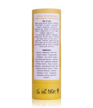 Der 100% natürliche und vegane Sun Stick LSF 30 bietet direkten Schutz vor der Sonne. Die Creme ist hypoallergen, geeignet für jeden Hauttyp und hat einen neutralen, milden, süßlichen Duft.